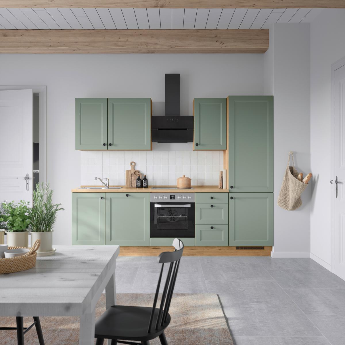 Küchenblock Cascada High m. Geräten Schilfgrün - Schilfgrün/Eichefarben, MODERN, Holzwerkstoff/Metall (270cm) - Nobilia