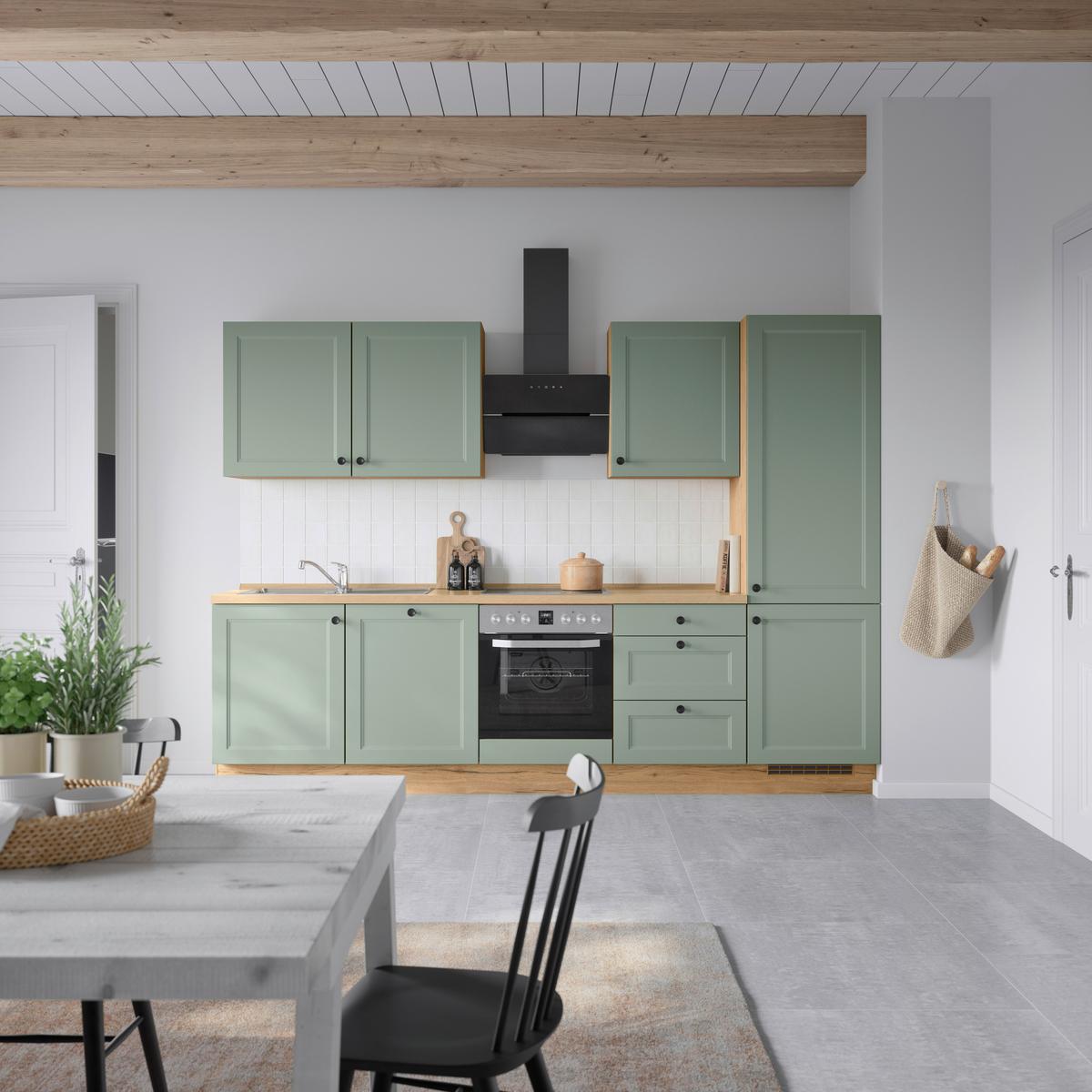 Küchenblock Cascada High m. Geräten Schilfgrün - Schilfgrün/Eichefarben, MODERN, Holzwerkstoff/Metall (300cm) - Nobilia