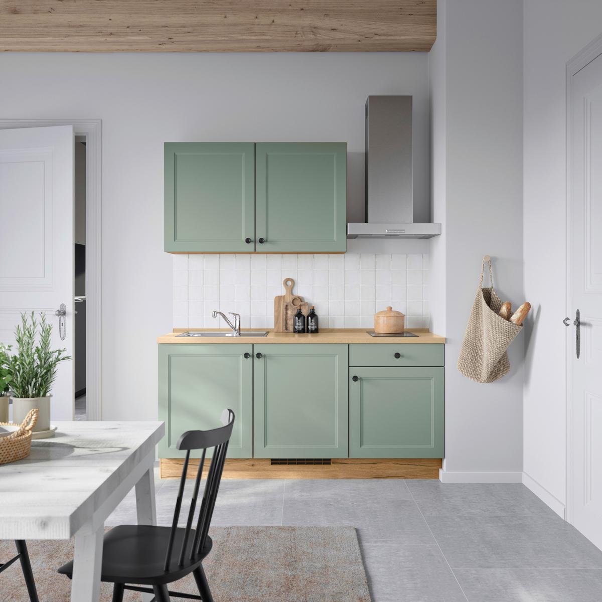 Küchenblock Cascada Low m. Geräten Schilfgrün - Schilfgrün/Eichefarben, MODERN, Holzwerkstoff/Metall (180cm) - Nobilia