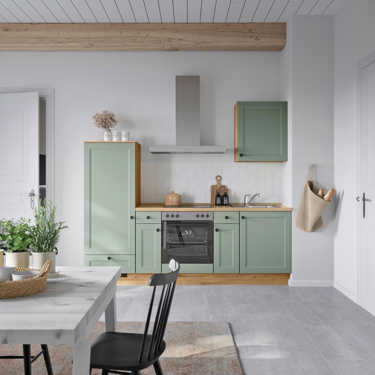 Küchenblock Cascada Low m. Geräten Schilfgrün - Schilfgrün/Schieferfarben, MODERN, Holzwerkstoff/Metall (240cm) - Nobilia