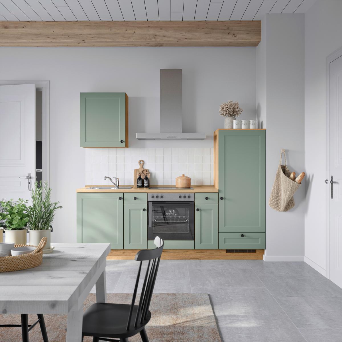 Küchenblock Cascada Low m. Geräten Schilfgrün - Schilfgrün/Eichefarben, MODERN, Holzwerkstoff/Metall (240cm) - Nobilia