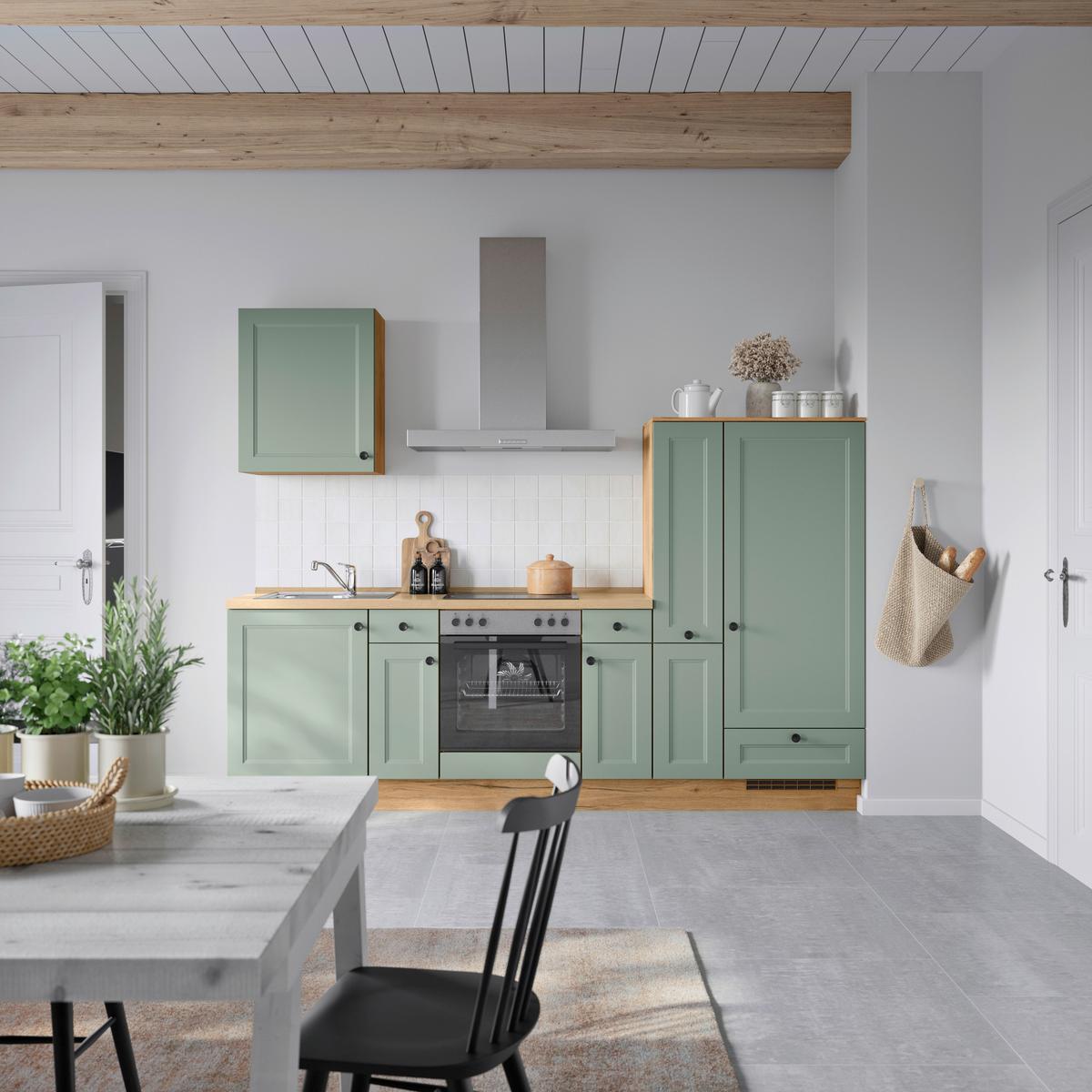 Küchenblock Cascada Low m. Geräten Schilfgrün - Schilfgrün/Eichefarben, MODERN, Holzwerkstoff/Metall (270cm) - NobiliaNobilia