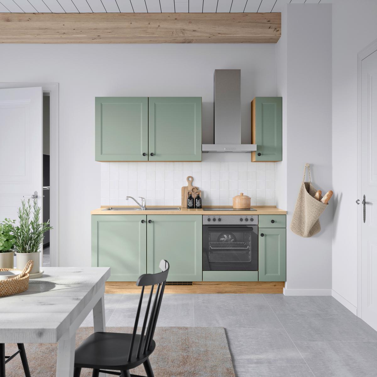 Küchenblock Cascada Low m. Geräten Schilfgrün - Schilfgrün/Eichefarben, MODERN, Holzwerkstoff/Metall (210cm) - Nobilia