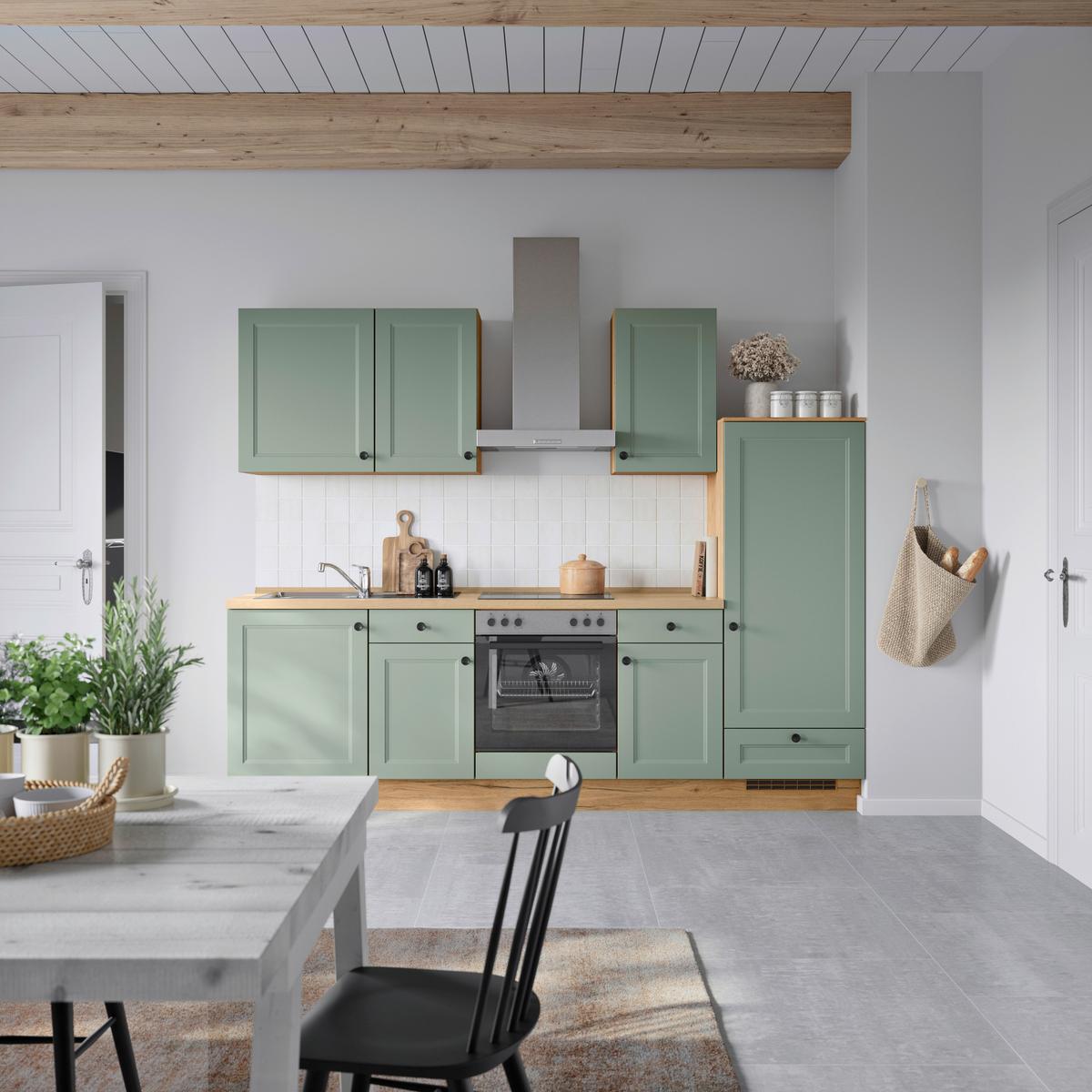 Küchenblock Cascada Low m. Geräten Schilfgrün - Schilfgrün/Eichefarben, MODERN, Holzwerkstoff/Metall (270cm) - Nobilia