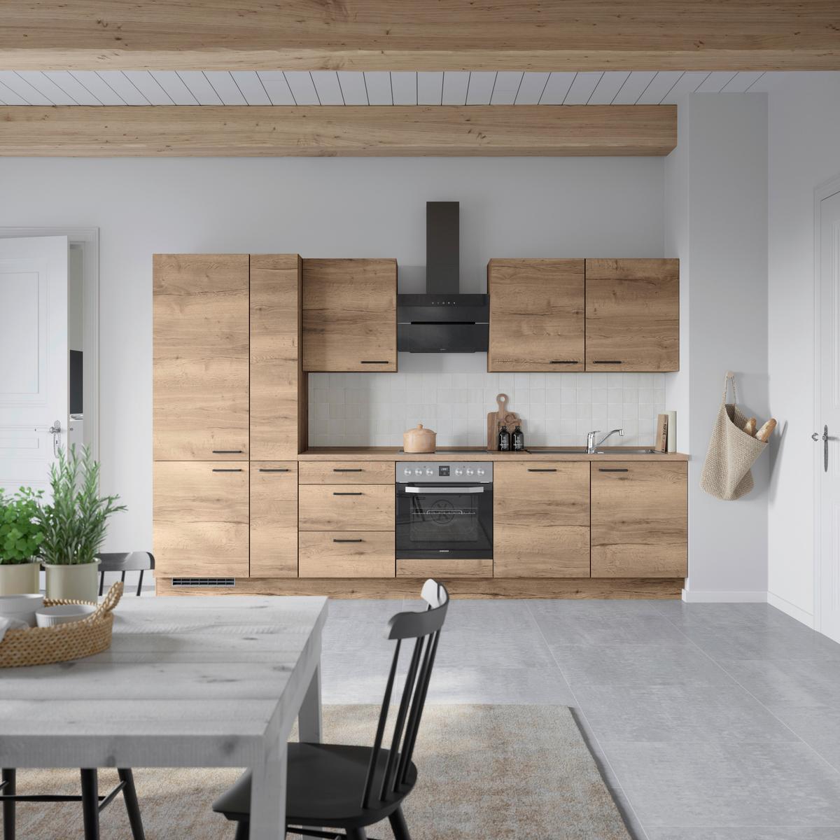 Küchenblock Structura High m. Geräten Eiche dunkel - Eiche dunkel/Schwarz, MODERN, Holzwerkstoff/Metall (330cm) - Nobilia