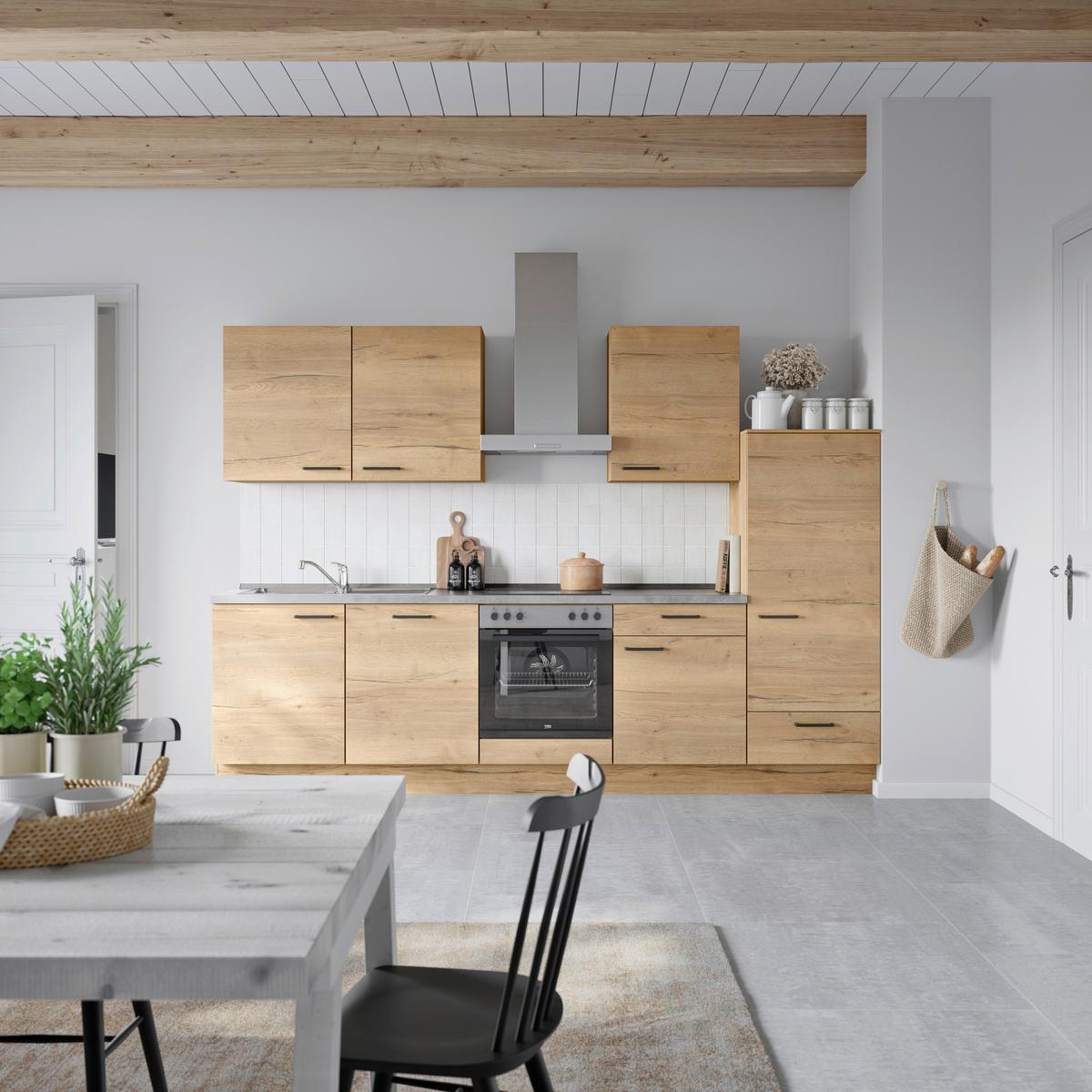 Küchenblock Structura Low m. Geräten Eiche - Schieferfarben/Eichefarben, MODERN, Holzwerkstoff/Metall (300cm) - Nobilia