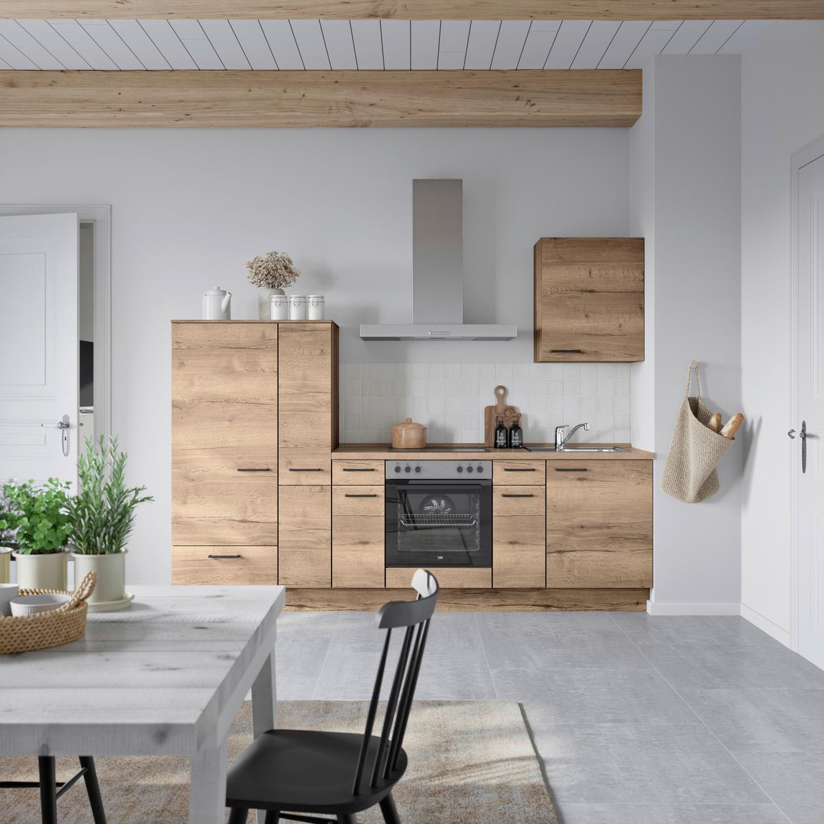 Küchenblock Structura Low m. Geräten Eiche dunkel - Eiche dunkel/Eichefarben, MODERN, Holzwerkstoff/Metall (270cm) - Nobilia