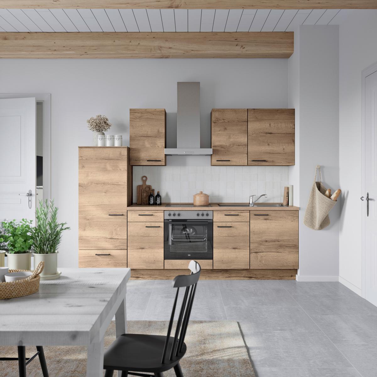 Küchenblock Structura Low m. Geräten Eiche dunkel - Eiche dunkel/Eichefarben, MODERN, Holzwerkstoff/Metall (270cm) - Nobilia