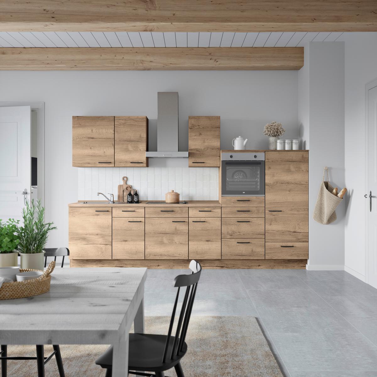 Küchenblock Structura Low m. Geräten Eiche dunkel - Eiche dunkel/Eichefarben, MODERN, Holzwerkstoff/Metall (330cm) - Nobilia