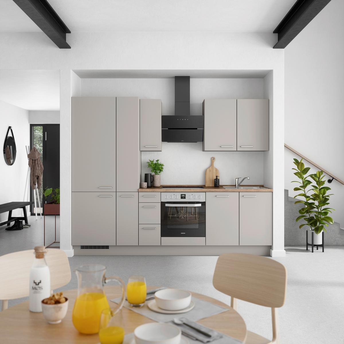 Küchenblock Touch High m. Geräten Grau - Eiche dunkel/Edelstahlfarben, MODERN, Holzwerkstoff/Metall (270cm) - Nobilia
