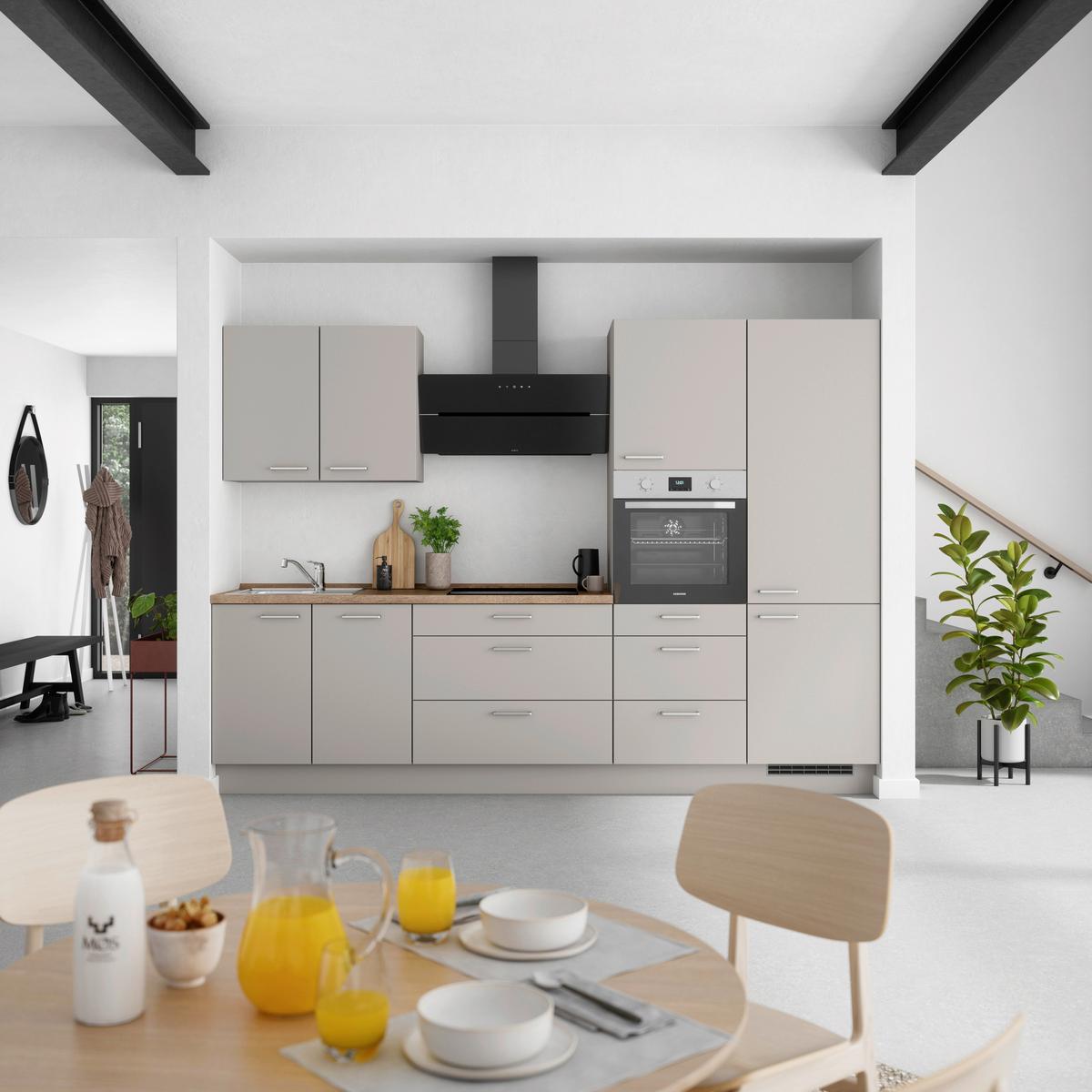 Küchenblock Touch High m. Geräten Grau - Eiche dunkel/Edelstahlfarben, MODERN, Holzwerkstoff/Metall (300cm) - Nobilia