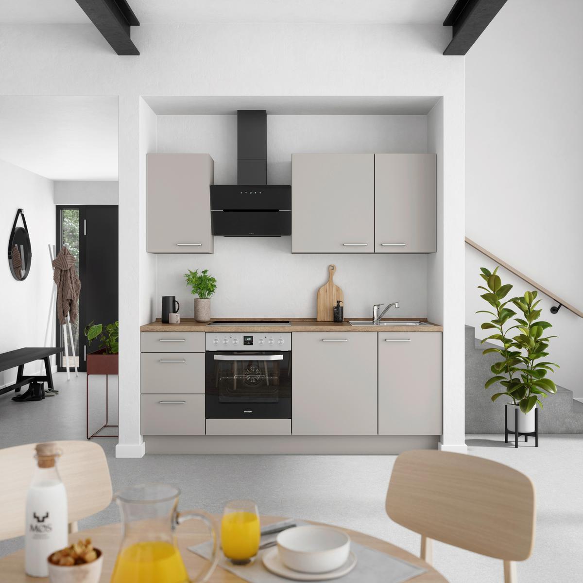 Küchenblock Touch High m. Geräten Grau - Eiche dunkel/Edelstahlfarben, MODERN, Holzwerkstoff/Metall (210cm) - Nobilia