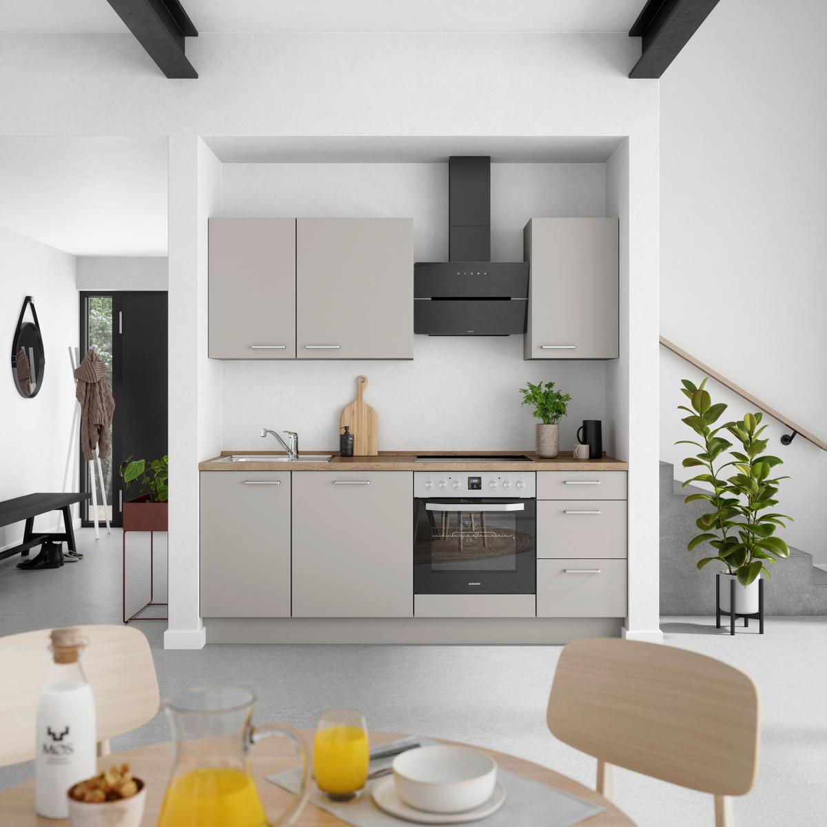 Küchenblock Touch High m. Geräten Grau - Eiche dunkel/Edelstahlfarben, MODERN, Holzwerkstoff/Metall (210cm) - Nobilia
