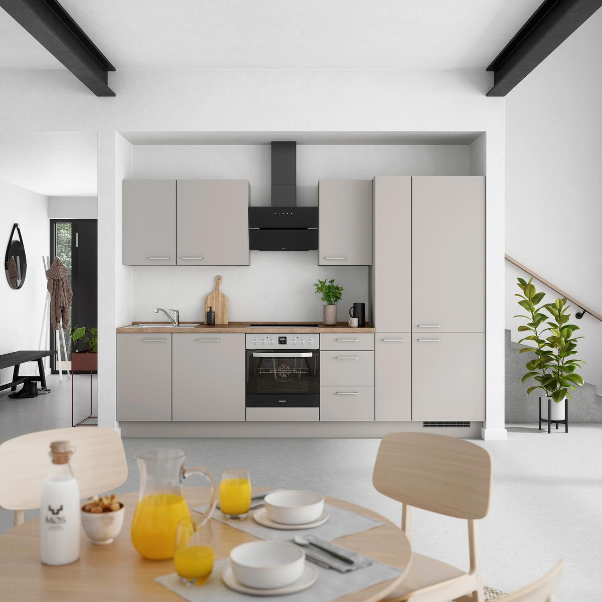 Küchenblock Touch High m. Geräten Grau - Eiche dunkel/Edelstahlfarben, MODERN, Holzwerkstoff/Metall (300cm) - Nobilia