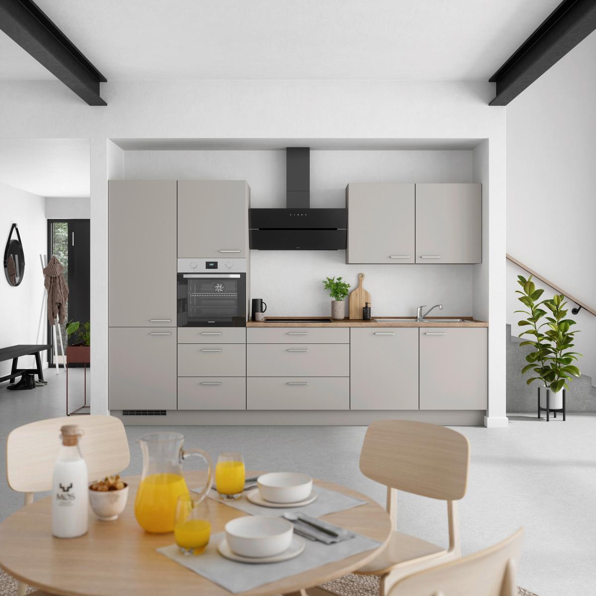 Küchenblock Touch High m. Geräten Grau - Eiche dunkel/Edelstahlfarben, MODERN, Holzwerkstoff/Metall (330cm) - Nobilia