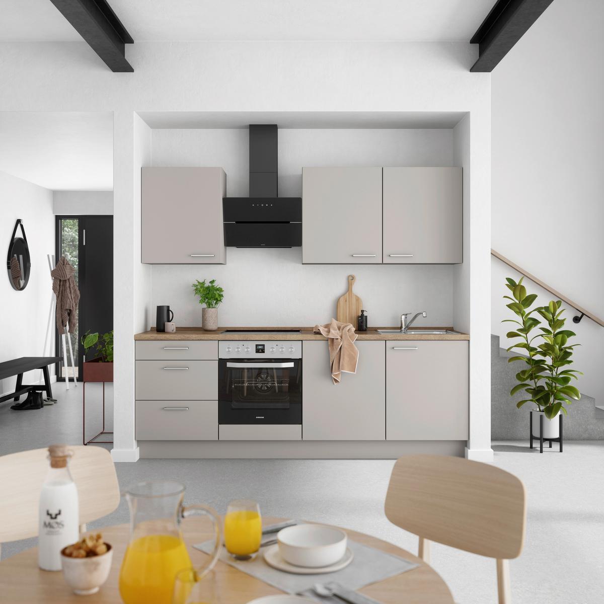 Küchenblock Touch High m. Geräten Grau - Eiche dunkel/Edelstahlfarben, MODERN, Holzwerkstoff/Metall (240cm) - Nobilia