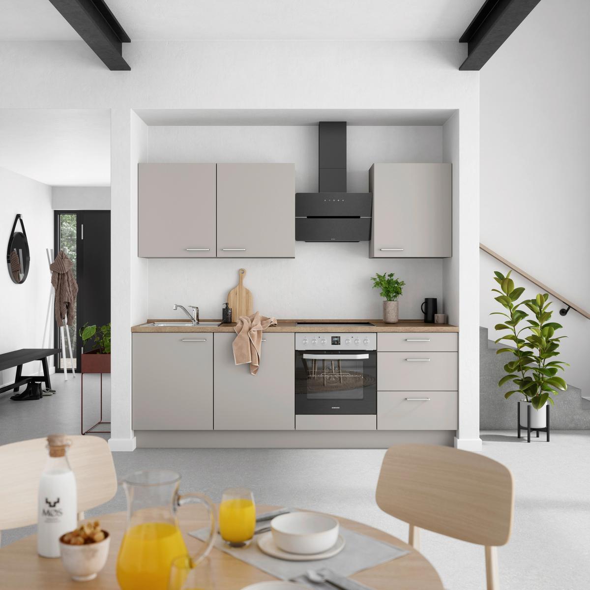 Küchenblock Touch High m. Geräten Grau - Eiche dunkel/Edelstahlfarben, MODERN, Holzwerkstoff/Metall (240cm) - Nobilia