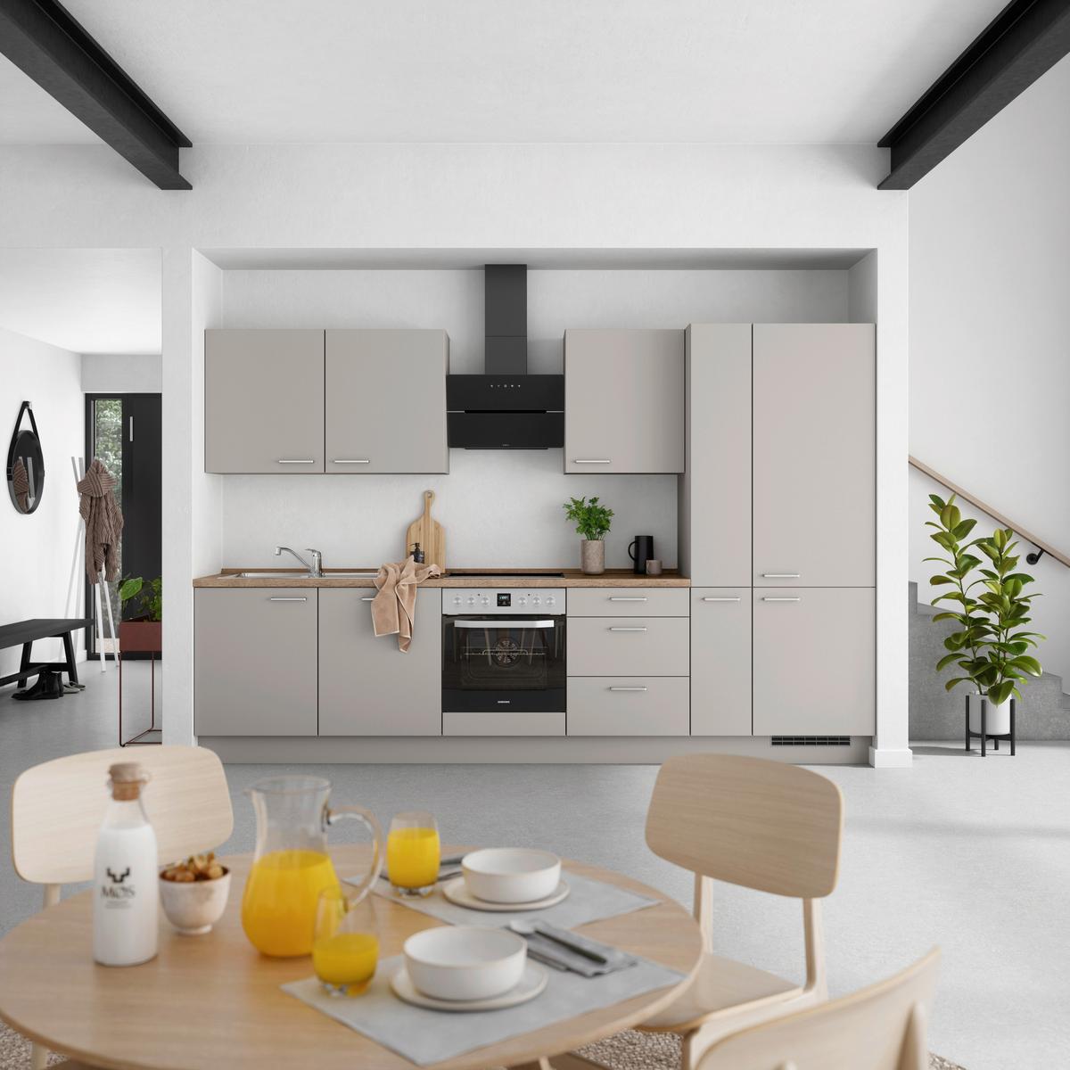 Küchenblock Touch High m. Geräten Grau - Eiche dunkel/Edelstahlfarben, MODERN, Holzwerkstoff/Metall (330cm) - Nobilia