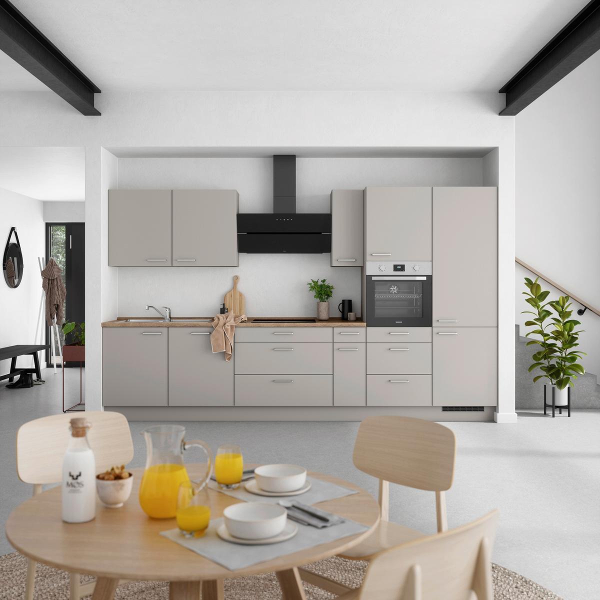 Küchenblock Touch High m. Geräten Grau - Eiche dunkel/Edelstahlfarben, MODERN, Holzwerkstoff/Metall (360cm) - Nobilia