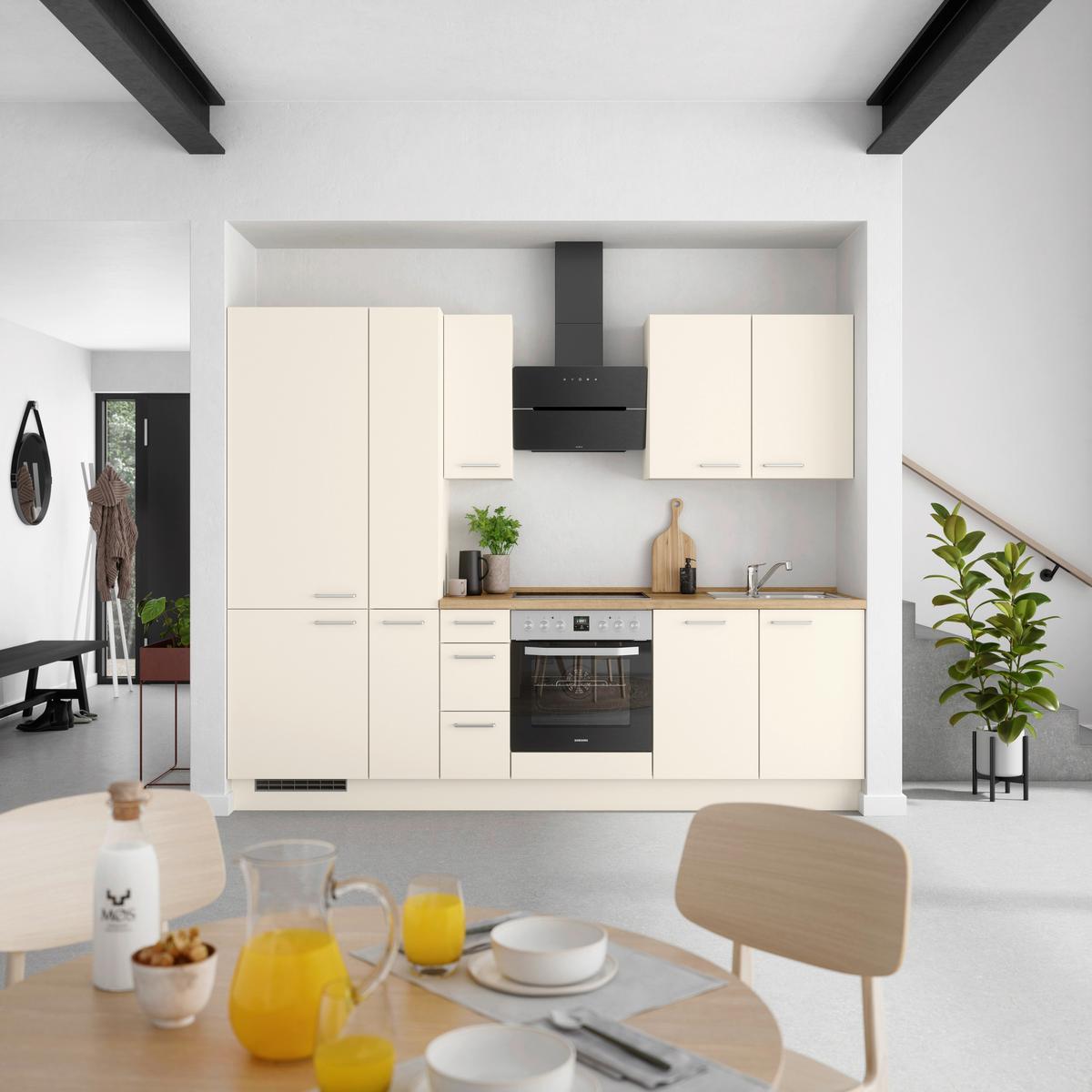 Küchenblock Touch High m. Geräten Magnolie - Edelstahlfarben/Eichefarben, MODERN, Holzwerkstoff/Metall (270cm) - Nobilia