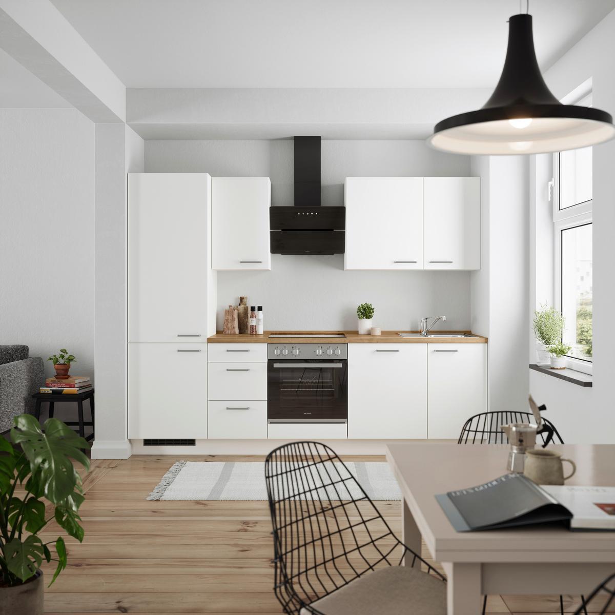 Küchenblock Touch High m. Geräten Weiß - Edelstahlfarben/Eichefarben, MODERN, Holzwerkstoff/Metall (270cm) - Nobilia