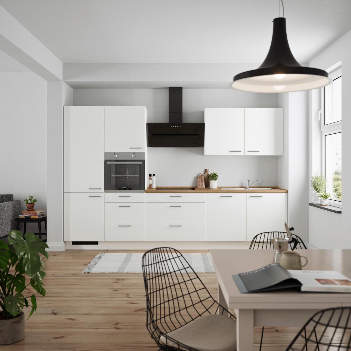 Küchenblock Touch High m. Geräten Weiß - Edelstahlfarben/Eichefarben, MODERN, Holzwerkstoff/Metall (330cm) - Nobilia