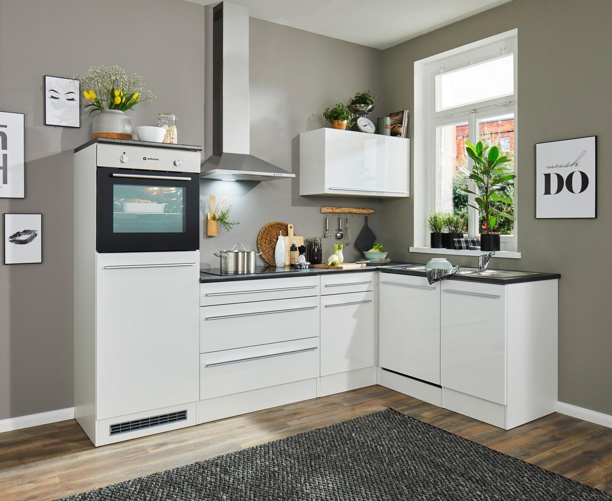 Eckküche Jazz mit Geräten ca.260x175cm Weiß Hochglanz - Weiß Hochglanz/Anthrazit, Basics, Holzwerkstoff/Kunststoff (260/175cm) - P & B