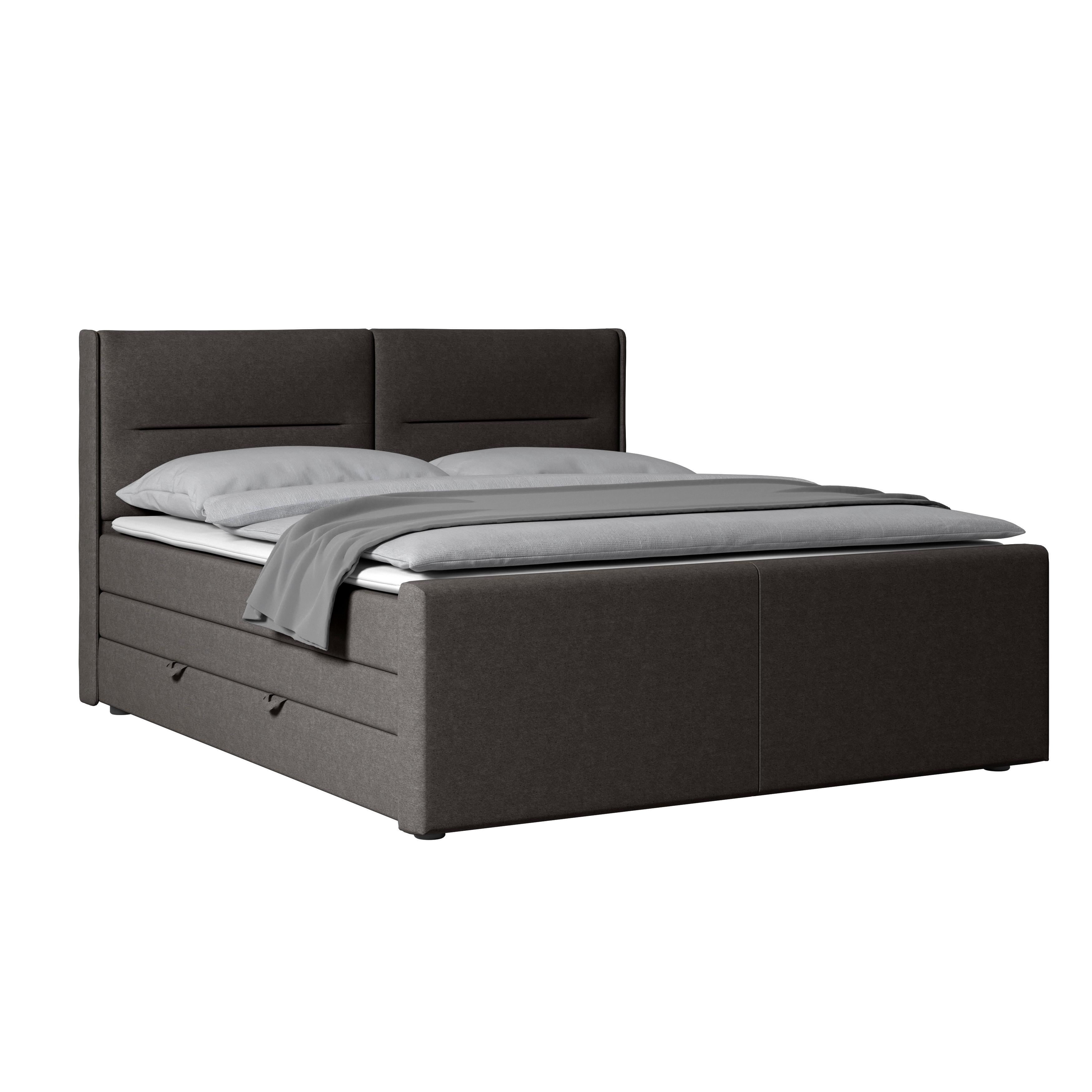 Besonderheiten: Bettkasten, gepolstertes Kopfteil, Federkernmatratze, Stoffauswahl, Topper durchgehend, in verschiedenen Größen erhältlich, Matratze in verschiedenen Härtegraden erhältlich, Matratze geteilt