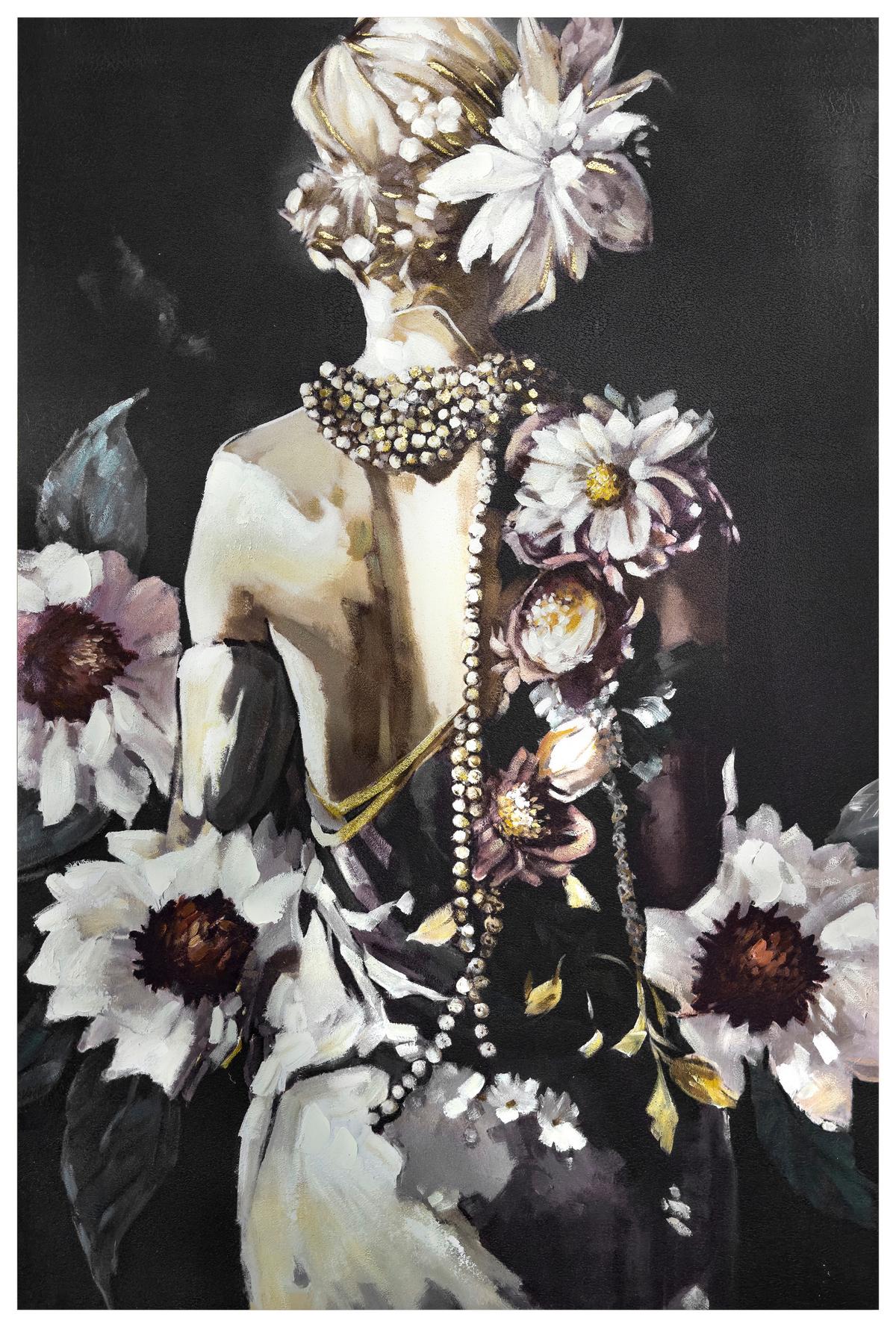 Das Motiv, das Frauen darstellt, wird auf einer Leinwand aus 60 % Polyester in Synthetikfaser ausgeführt und durch einen stabilen Kiefernholzrahmen unterstützt. Die Natur-Oberfläche des massiven Echtholzrahmens verleiht dem Bild eine hochwertige Optik.