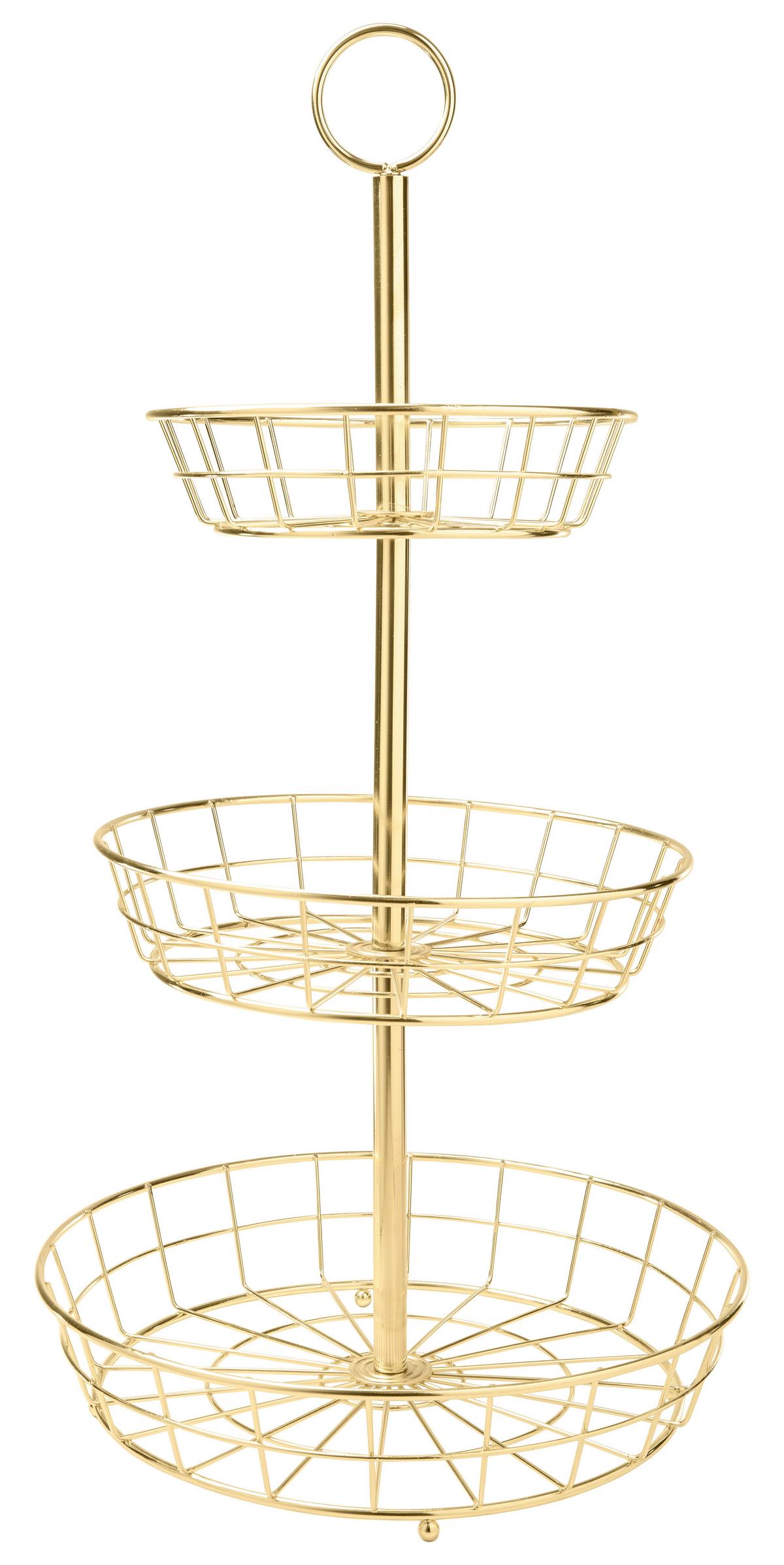 Die Obstschale in Goldfarben spendiert Ihnen nicht nur genüssliches Obst, ebenso macht diese eine echt tolle Figur in Ihrer Küche! Mit einer Größe von ca. 33 x 62 cm (D x H) ist die Obstschale aus Metall ein echter Hingucker!
