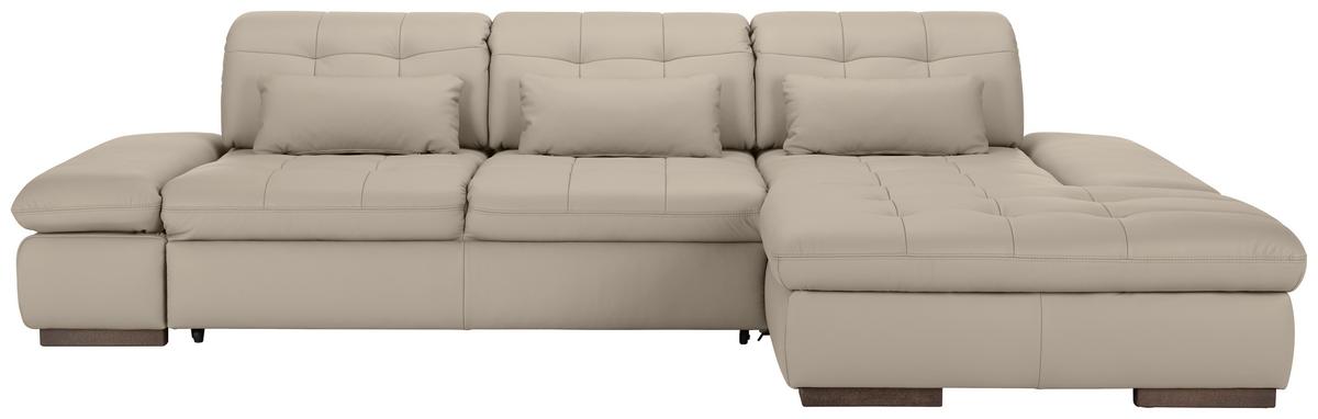 Sanfino: Hellgraue Leder-Wohnlandschaft mit Schlaffunktion