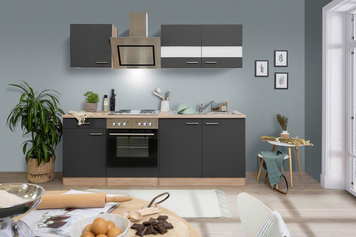 Küchenblock Merle mit Geräten ca. 210 cm Grau - Edelstahlfarben/Eichefarben, Basics, Holzwerkstoff/Metall (210cm) - RespektaRespekta