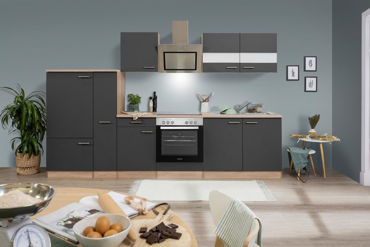 Küchenblock Merle mit Geräten ca. 300 cm Grau - Edelstahlfarben/Eichefarben, Basics, Holzwerkstoff/Metall (300cm) - Respekta