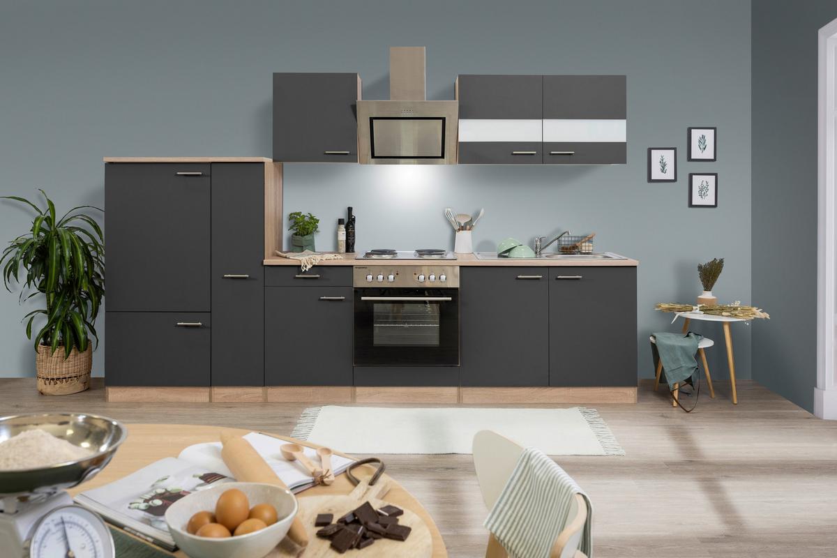 Küchenblock Merle mit Geräten ca. 300 cm Grau - Edelstahlfarben/Eichefarben, Basics, Holzwerkstoff/Metall (300cm) - RespektaRespekta