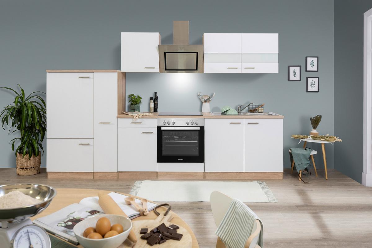 Küchenblock Merle mit Geräten ca. 300 cm Weiß - Edelstahlfarben/Eichefarben, Basics, Holzwerkstoff/Metall (300cm) - RespektaRespekta