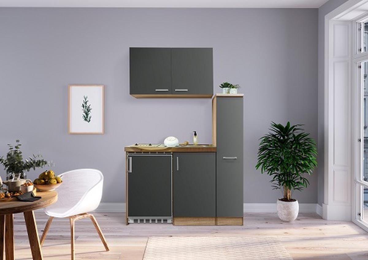 Respekta Miniküche Grau/Eichefarben m. Geräten B: ca. 130 cm