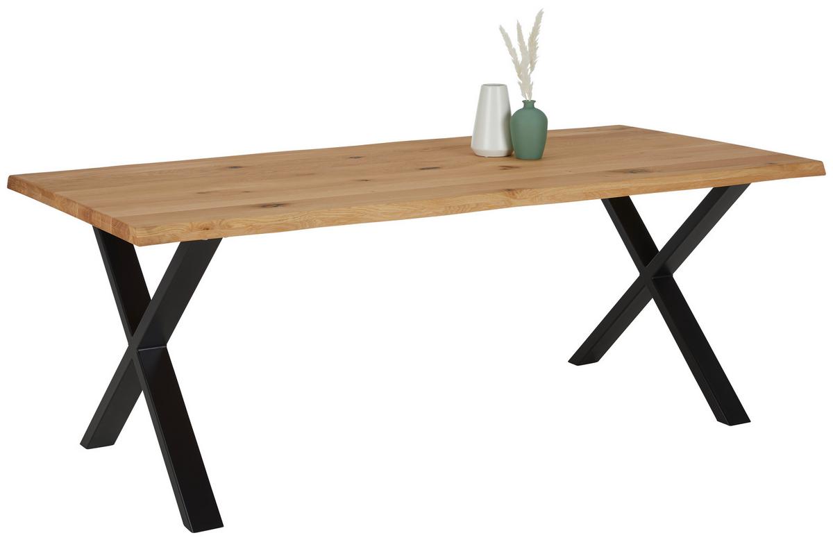 Esstisch Oak Wildeiche massiv ca. 200x100x76cm - Wildeiche/Schwarz, Natur, Holz/Metall (200/100/75cm) - Zandiara